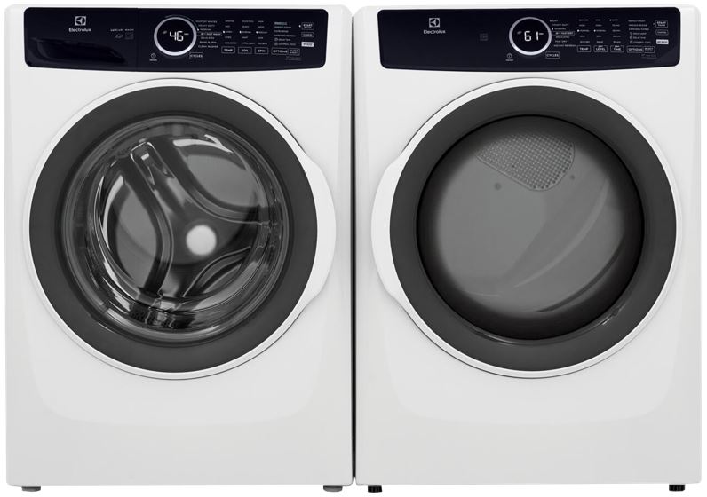 Electrolux White Front Load Laundry Pair with a 5.2 cu. ft. capacity front load washer and a 8.0 cu. ft. capacity front load electric dryer.Read More