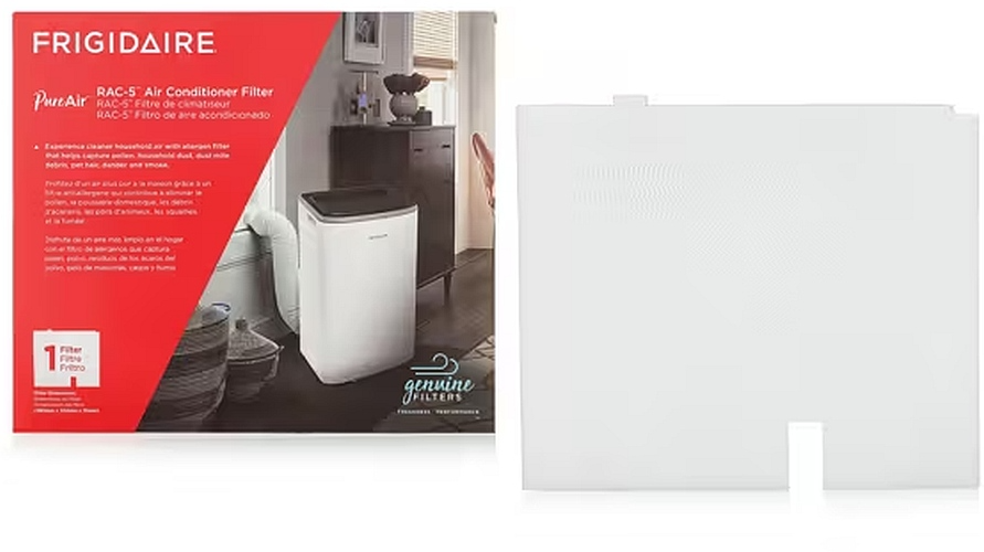 Enjoy fresher room air with the PureAir® RAC-5™Air Conditioner Filter. This allergen filter helps capture pollen, household dust, dust mite debris, pet hair, dander, and other fine particles. Experience cleaner household air with the high air flow design that proactively captures unwanted particles from the air as it passes through the filter. For optimal performance replace every 6 months or as needed. Includes 1 allergen filter. The PureAir® RAC-5™ Filter is recommended for optimal performance of select Frigidaire A/C units. See fits models list below.Read More