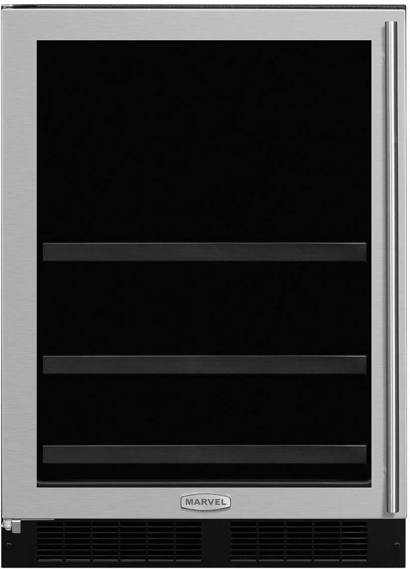 (2) 3-in-1 Split Convertible Shelves — cantilevered glass shelving converts to wine racks with a Vibration Neutralization System or a split wine rack and flat storage all in one