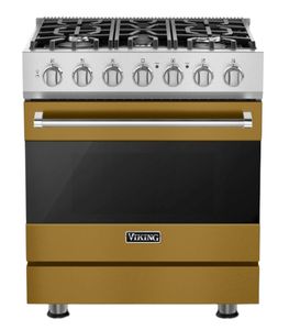 The Viking® Golden Hour 30" Self-Cleaning Gas Range with Five Burners combines luxurious design with professional cooking power. Its precision burners deliver consistent heat, while the self-cleaning function offers convenience. Perfect for both everyday cooking and gourmet meals, it enhances any kitchen.Read More