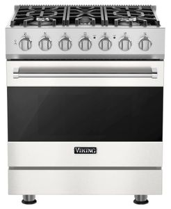 The Viking® 30" Self-Cleaning Gas Range features powerful burners for precise cooking control, with a spacious oven for baking, roasting, and broiling. The self-cleaning function makes maintenance easy, while the convection system ensures even cooking. Ideal for those seeking high-performance cooking in a compact size.Read More